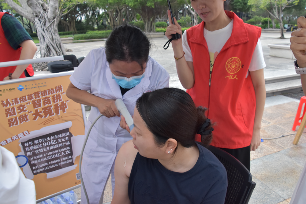 5月25日,我院选派18位医疗骨干参加市卫健委在白鹭洲公园主办的“健康体重 厦门行动”全民健康素养月宣传活动。张世阳院长代表我院接旗,由健康推广大使邵伟主任带队,康复科康瑾婕主任、中医科余亚信副主任等组成的专家团队为市民提供专业义诊。现场特别运用冲击波疼痛治疗仪为问诊群众缓解疼痛,获得市民一致好评。