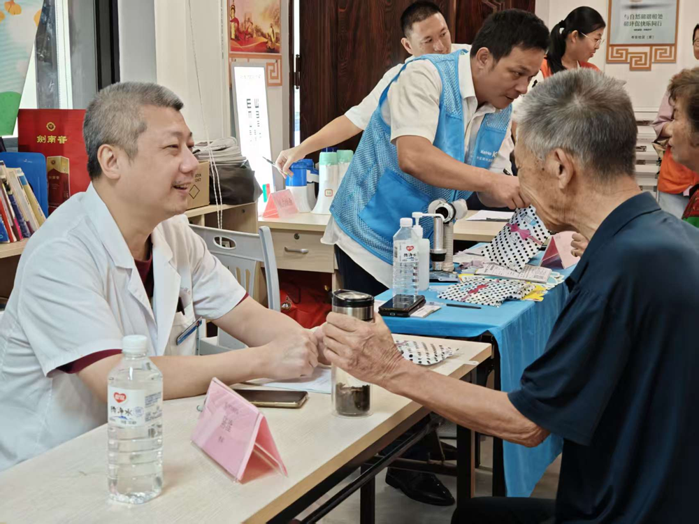 三、党建共建聚合力,院地融合促发展8月1日,我院充分发挥与杏林社区卫生服务中心的共建优势,携手走进园博社区开展主题义诊活动。本次活动组织涵盖多个学科的专家团队,包括中医科陈秋旻、内分泌科邵伟主任医师,神经外科朱明涛、妇产科李玲副主任医师及康复科陈永晓主治医师,为社区居民提供专业疾病咨询、健康筛查和康复指导等服务,切实将优质医疗资源送到居民身边。