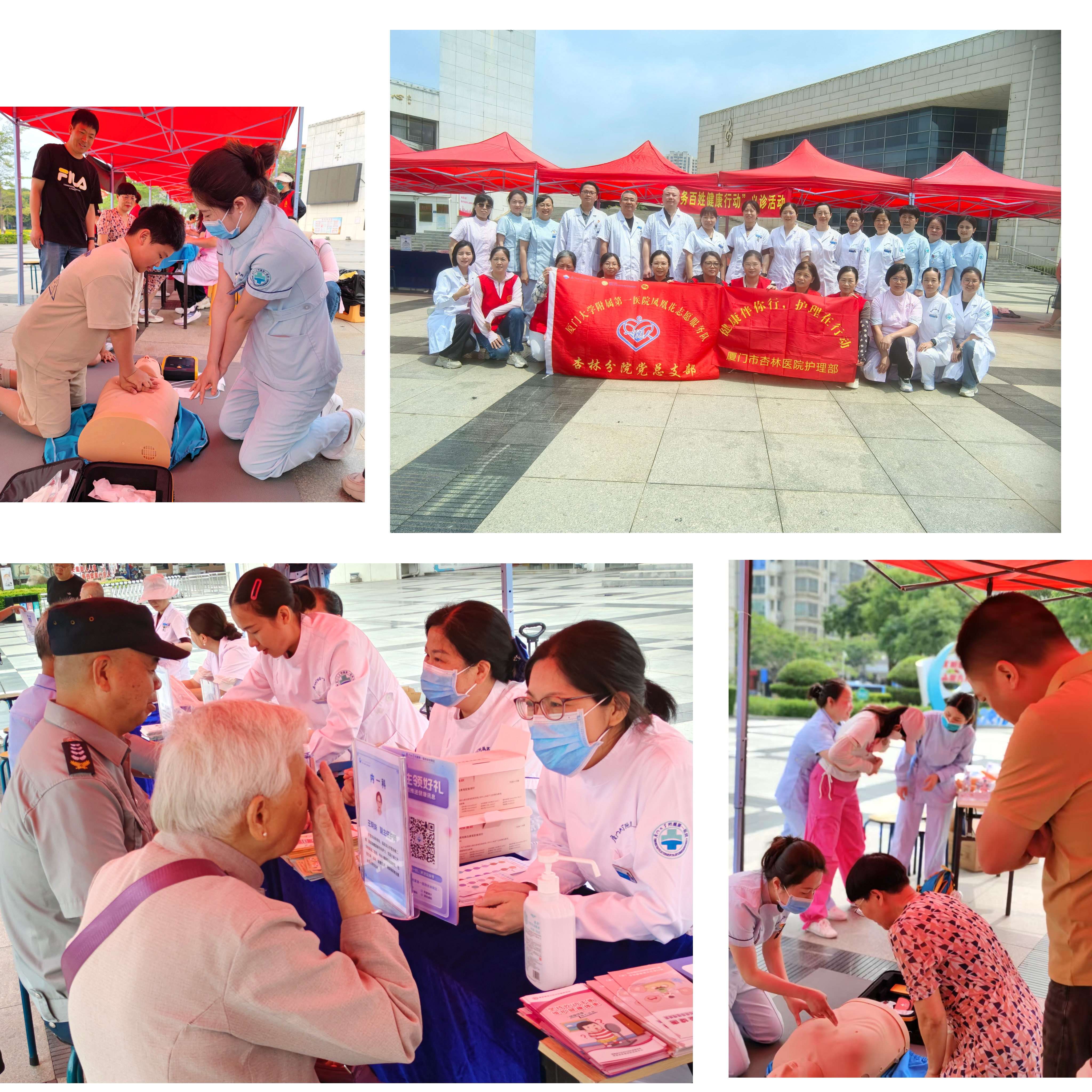5月5日,杏林文体中心广场变身“健康守护站”。多学科专家团队联合坐诊,为市民提供“家门口”的疾病咨询与健康筛查:糖尿病护士为“糖友”定制控糖方案,呼吸治疗师手把手教居家康复技巧,急救团队更用“黄金四分钟”教学点燃全场——白发老人学习心肺复苏,孩子踮脚模仿海姆立克法。这场义诊不仅传递了健康知识,更让市民看到:护士不仅是病房里的白衣天使,更是全民健康的“第一响应人”。