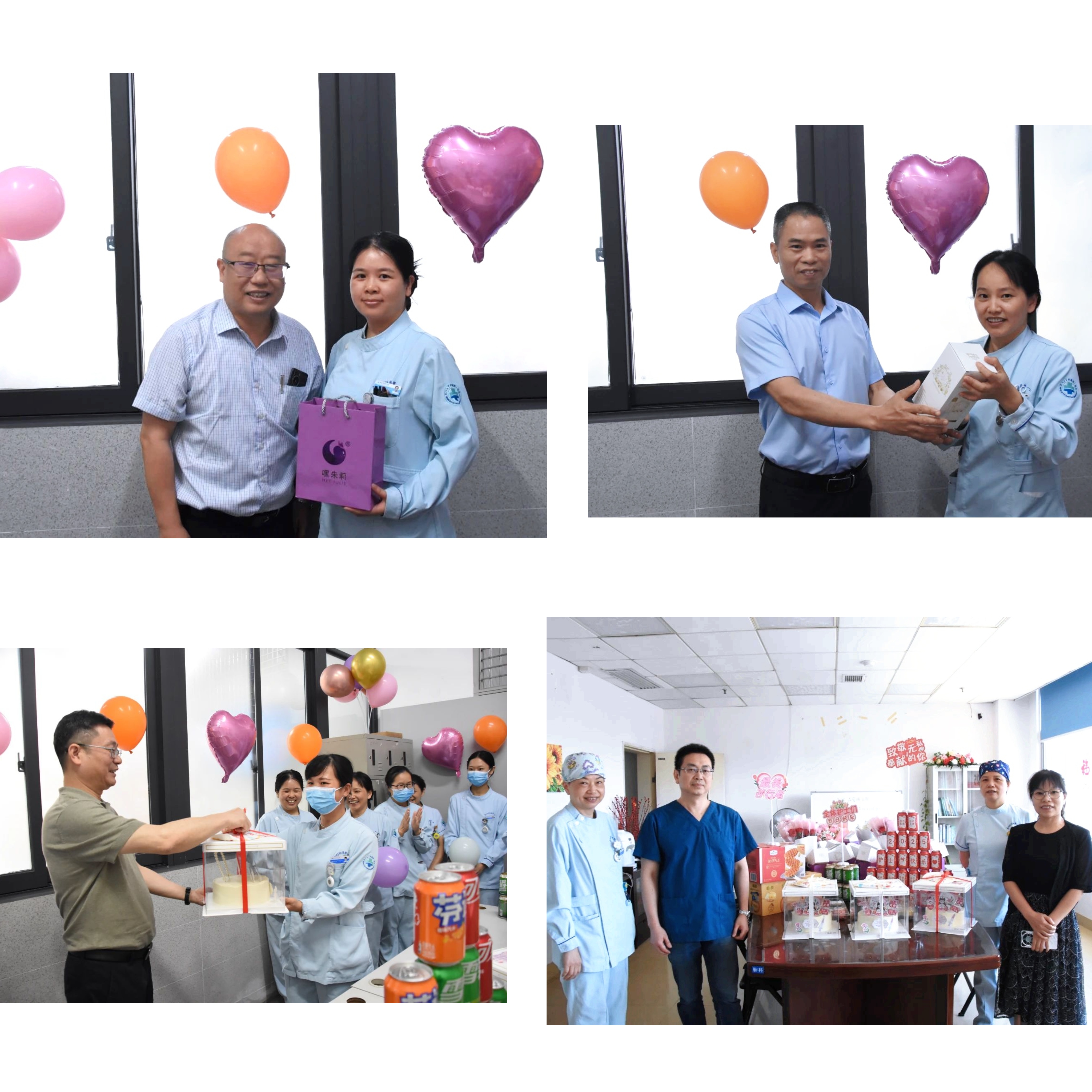 节日当天,张院长、杨书记及卓书记带队到各科室,为坚守岗位的护士送上惊喜。“你们守护患者,我们守护你们!”张院长将礼盒递给值班护士。礼盒中的细节里满是体贴。这份“突如其来”的关怀,让临床一线的疲惫瞬间化作暖流。