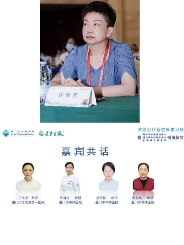 在厦门市杏林医院许怡芳片区护士长主持的“嘉宾共话”环节,厦门大学附属第一医院肿瘤内科王素平护士长、我院肺科陈春红护士长、副主任护师洪燕松、主管护师苏惠凤等多位临床护理专家,围绕肺癌患者全病程管理、症状控制、心理支持及康复指导等内容展开深入交流,现场气氛热烈,将会议推向高潮。