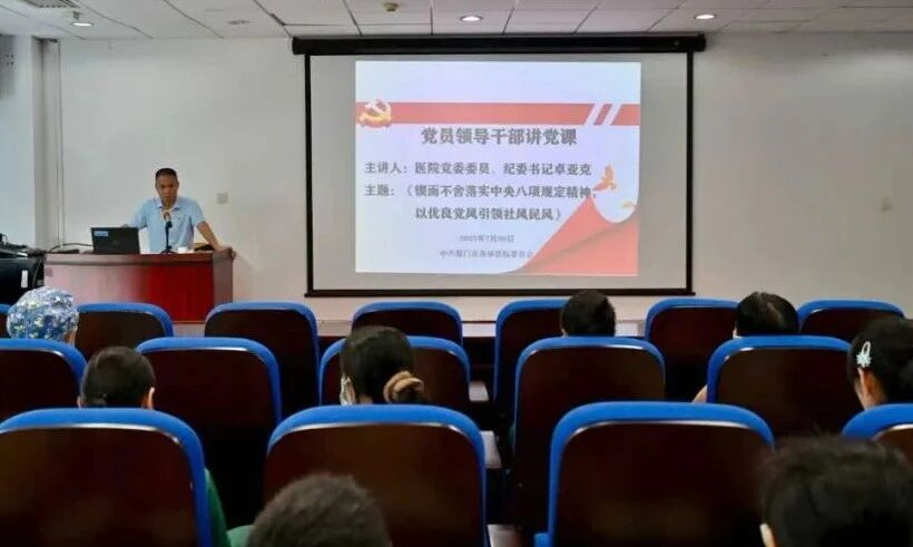 2025年7月30日,一场干货满满的专题党课在厦门市杏林医院开讲。医院纪委书记卓亚克作《锲而不舍落实中央八项规定精神 以优良党风引领民风社风》专题教育党课,党课紧扣中央八项规定精神以及正负面清单,深入浅出地阐释作风建设对于党的建设具有重要意义,通过教育让“作风硬则事业兴”的理念深植人心。