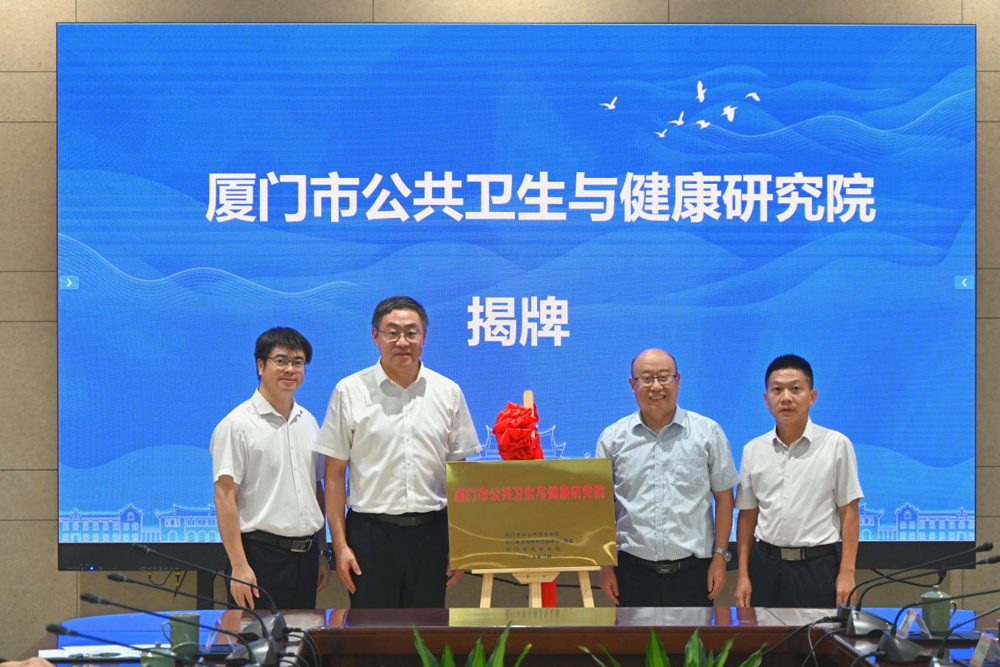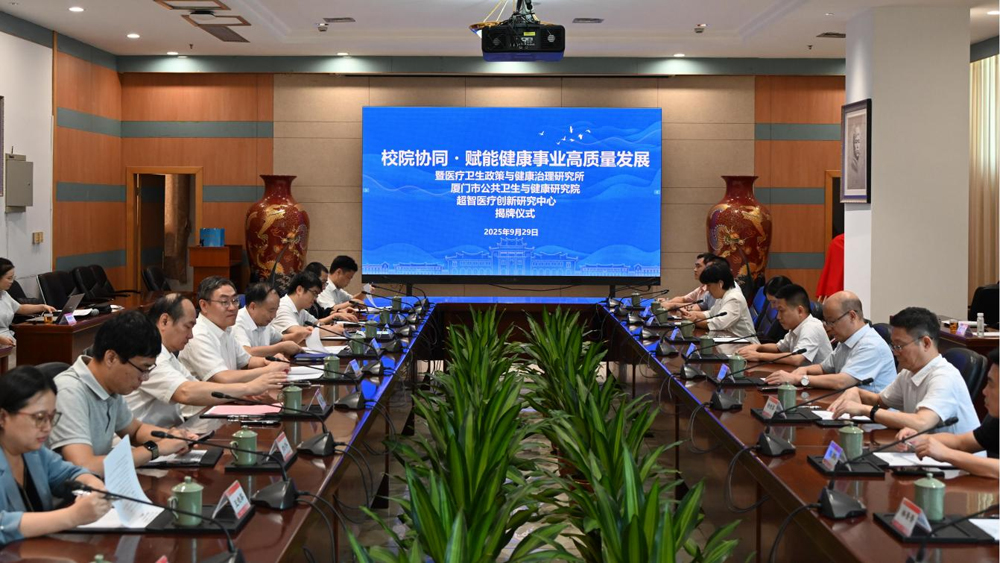 为进一步深化院校合作,推动我市医疗卫生事业创新发展,9月29日,“校院协同·赋能健康事业高质量发展”揭牌仪式在厦门大学颂恩楼举行,仪式由厦门大学、厦门市疾病预防控制中心、厦门市杏林医院联合举办。会上,医疗卫生政策与健康治理研究所、厦门市公共卫生与健康研究院、超智医疗创新研究中心三个健康研究机构正式成立。