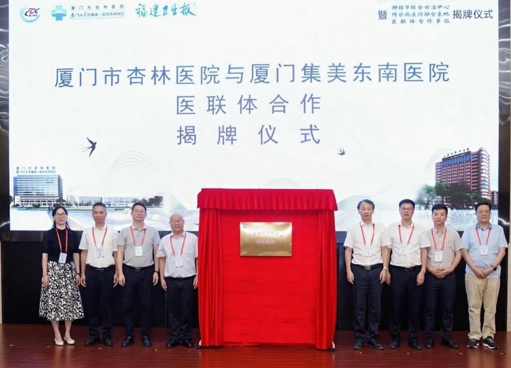 仪式上,肺结节综合诊治中心、传染病医防融合基地、厦门市杏林医院与厦门集美东南医院及杏健医院医联体合作单位依次揭牌。三大举措聚焦肺癌早筛早诊、传染病防控闭环管理与区域医疗资源协同,构建“临床—科研—预防—基层”四位一体的健康服务新体系,为“健康厦门”建设注入新动能。
